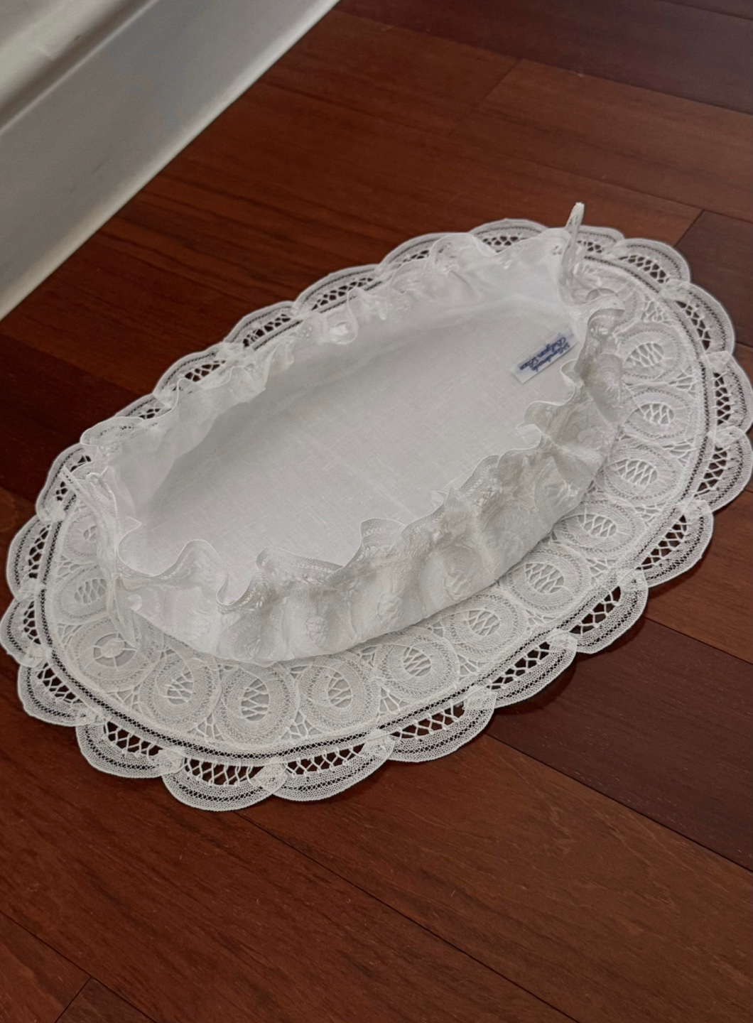 [EDIT] handmade lace bread dish (oval) whiteㅣbelgium