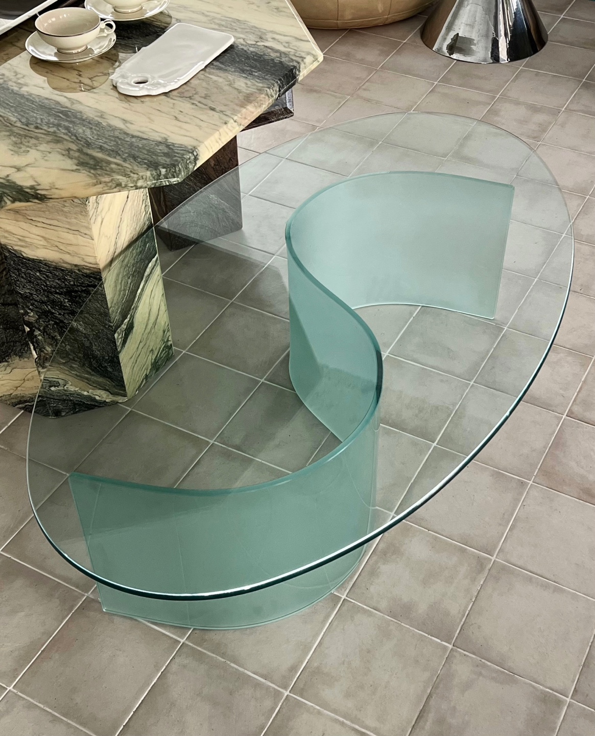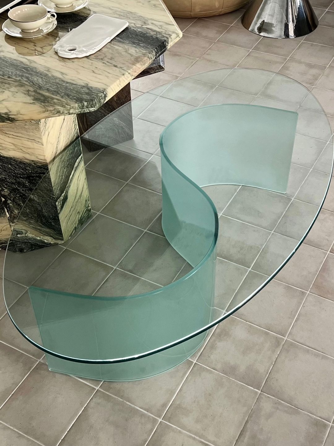 1970s curved bridge glass tableㅣItaly