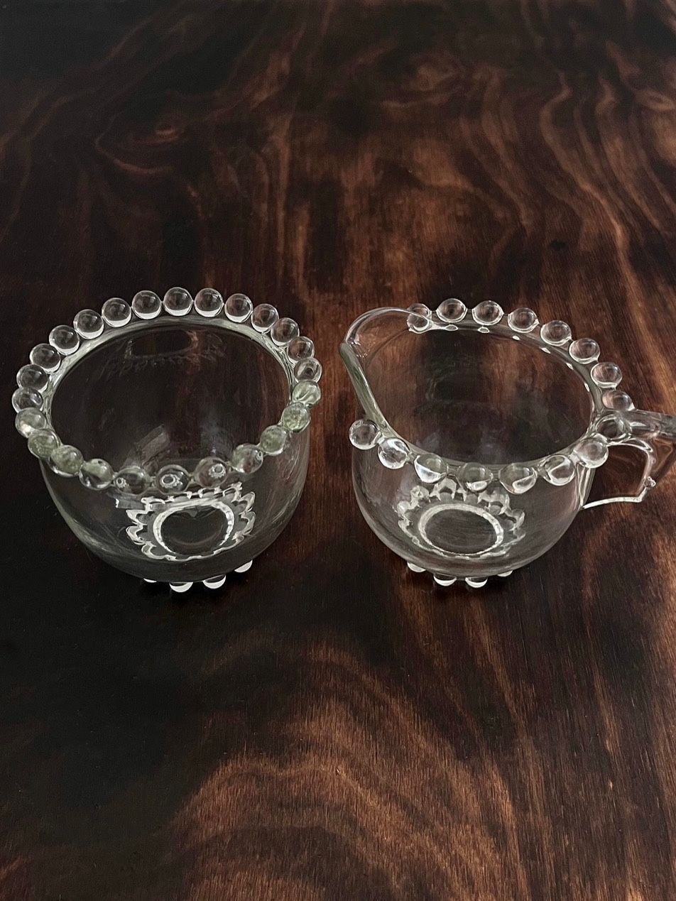 1970s candlewick beaded sugarbowl and creamer setㅣfrance