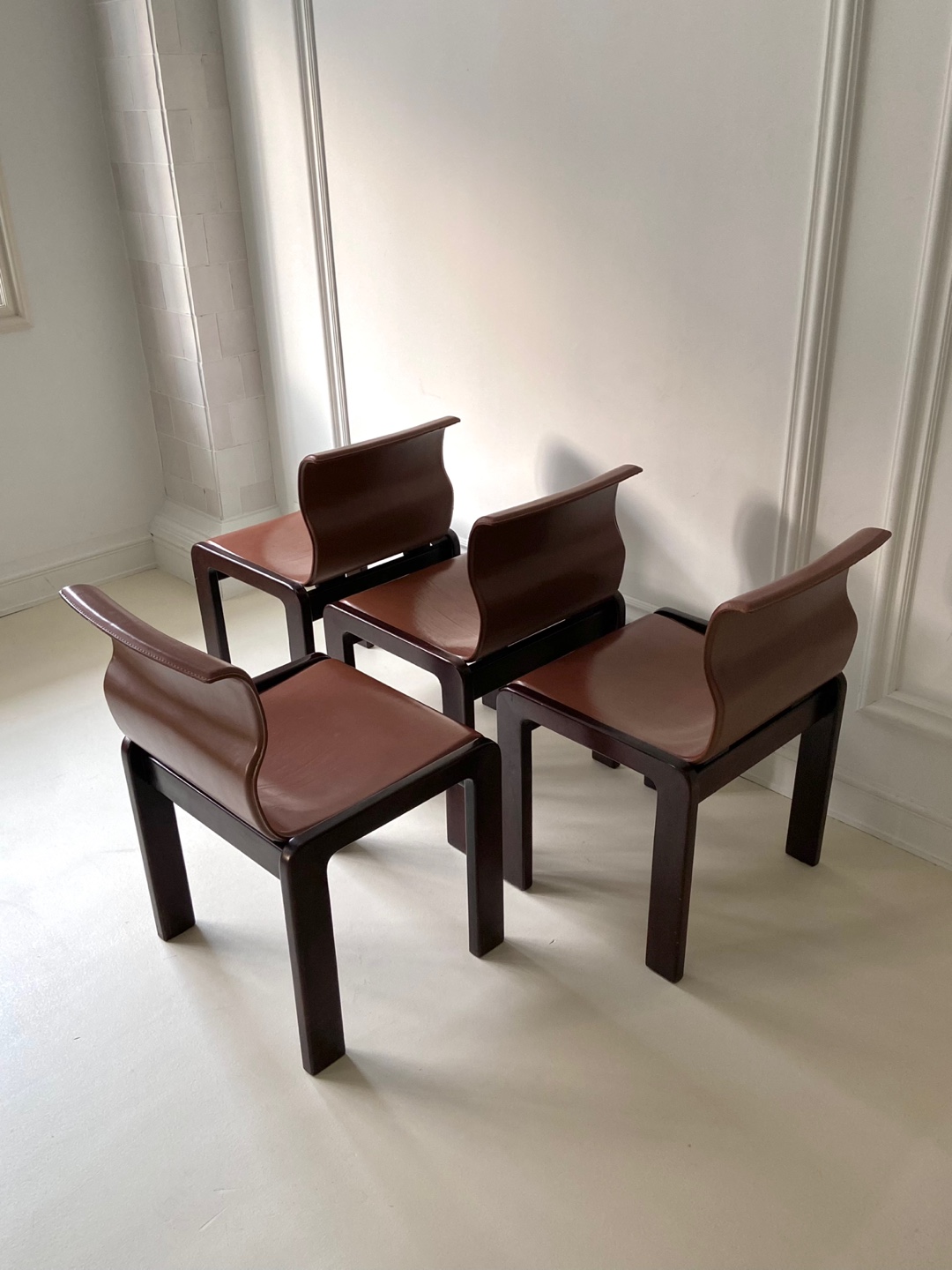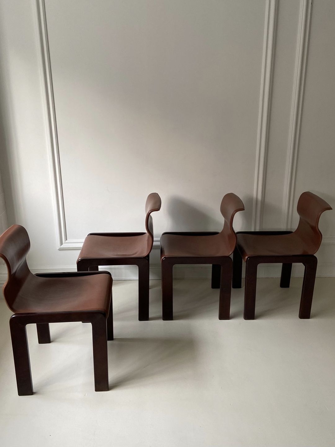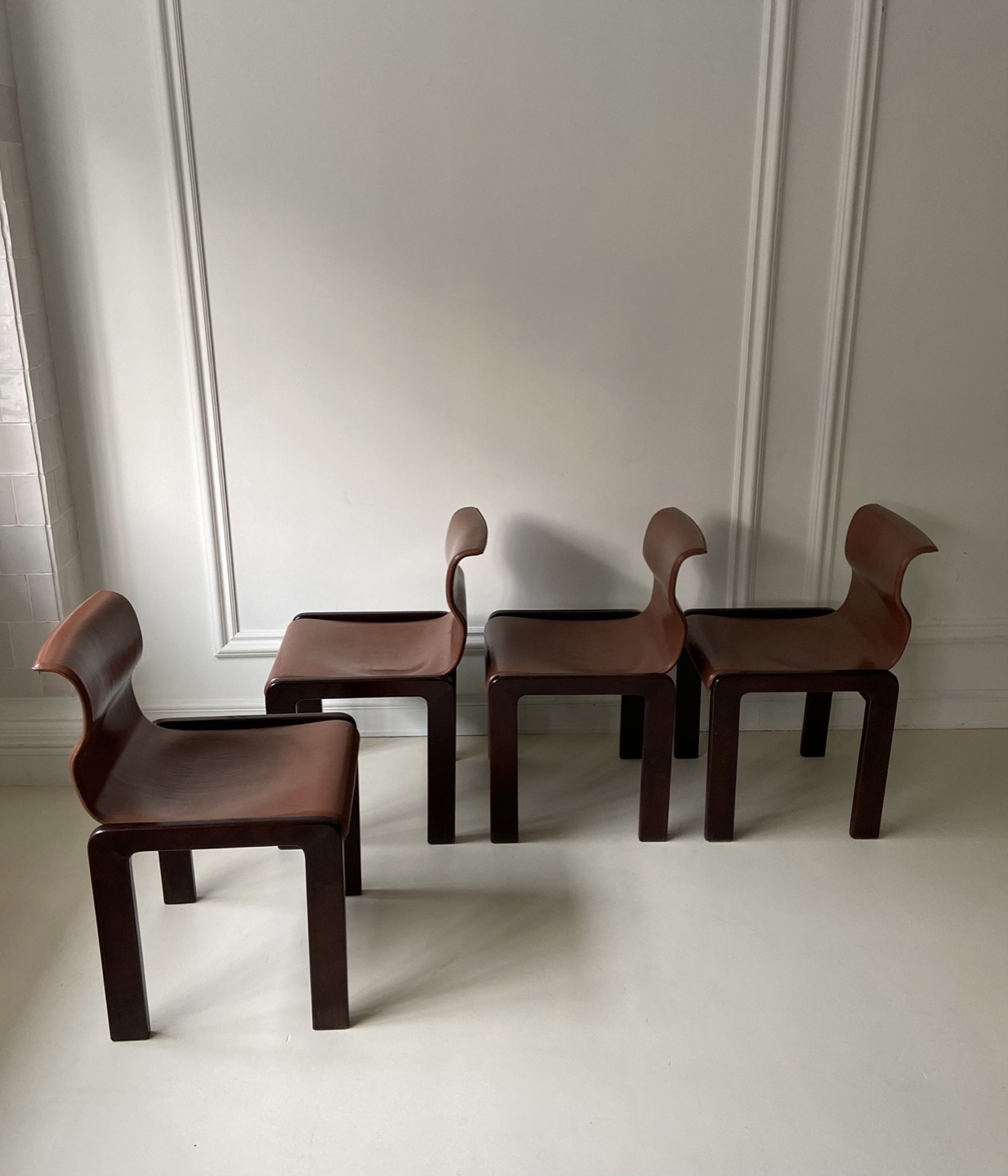 1966 Playwood leather dining chairs by Afra & Tobia Scarpa for private project (Villa in Francavilla Fontana), Italy