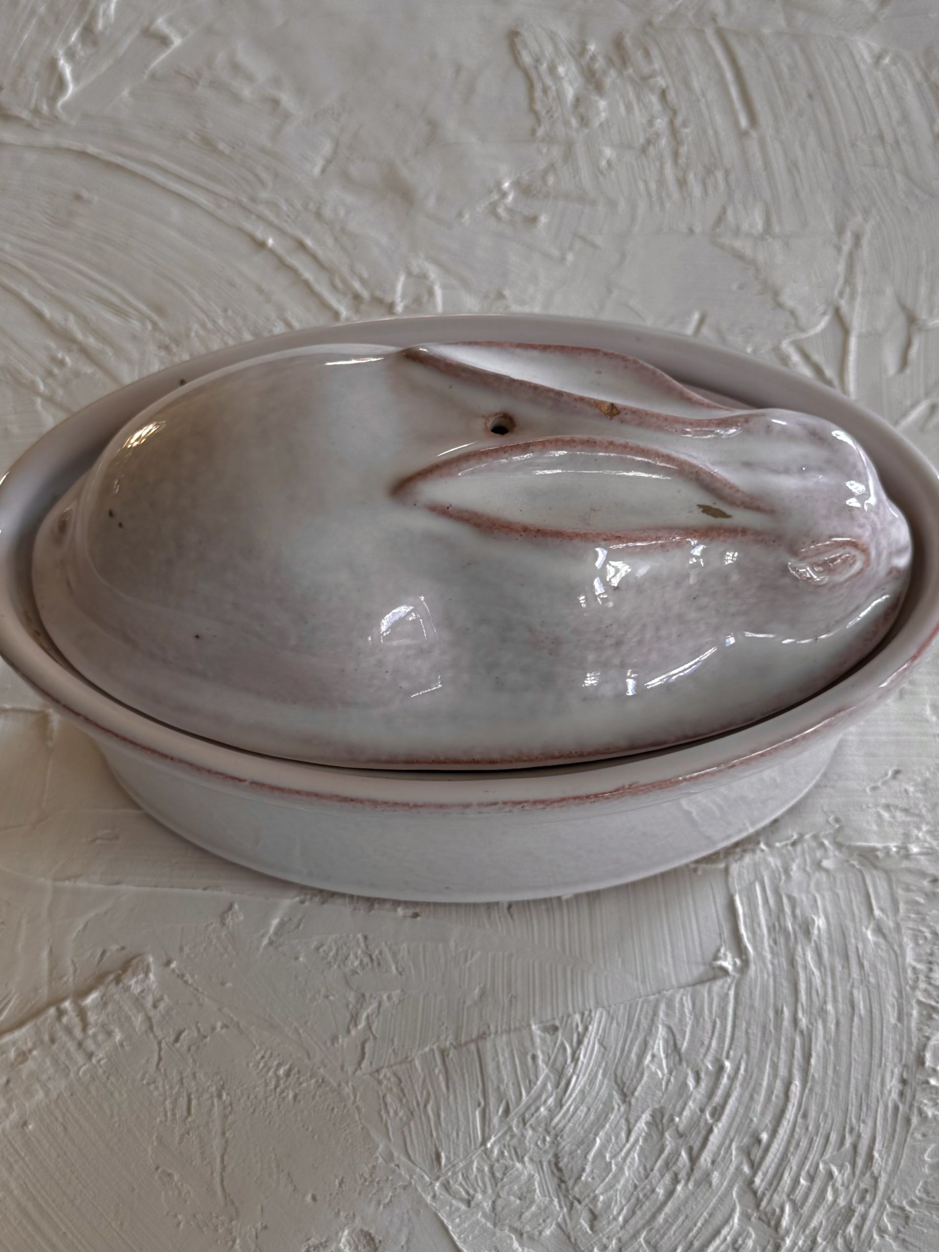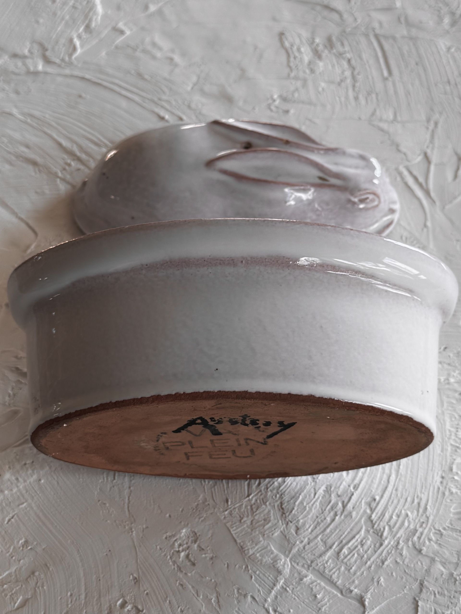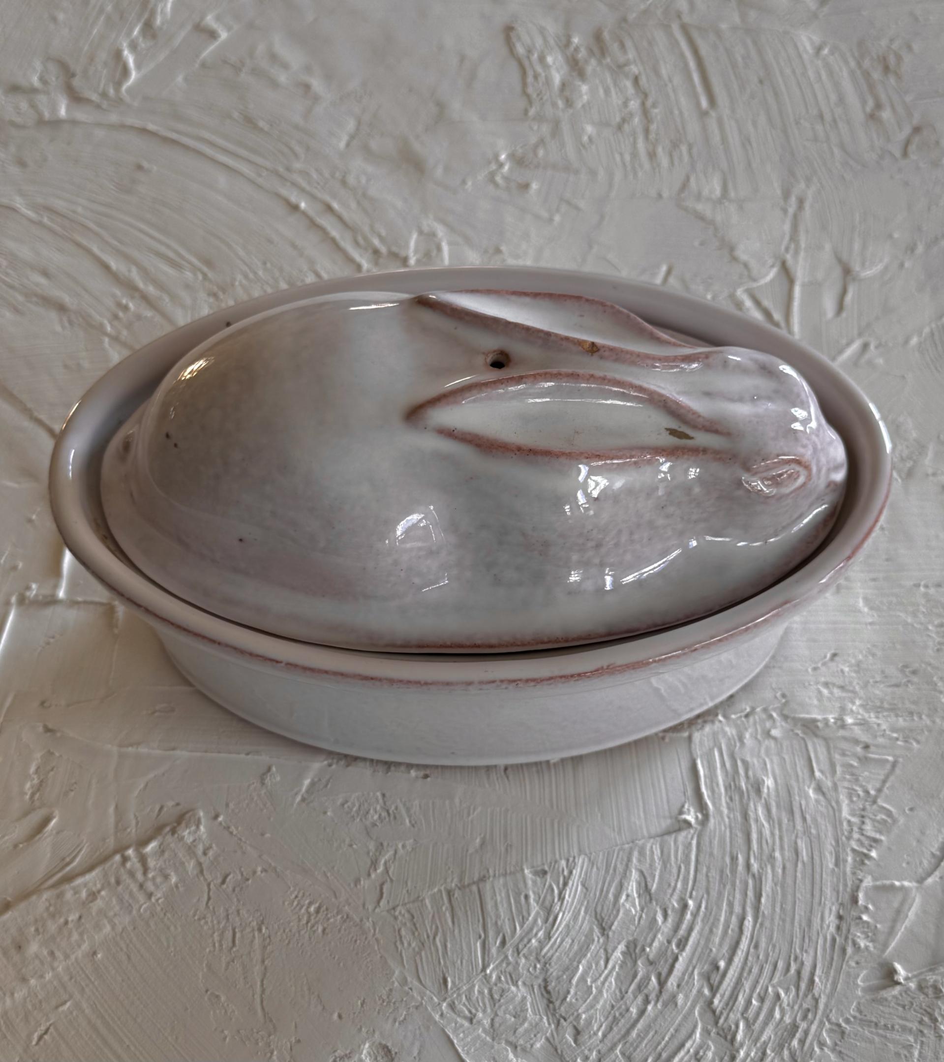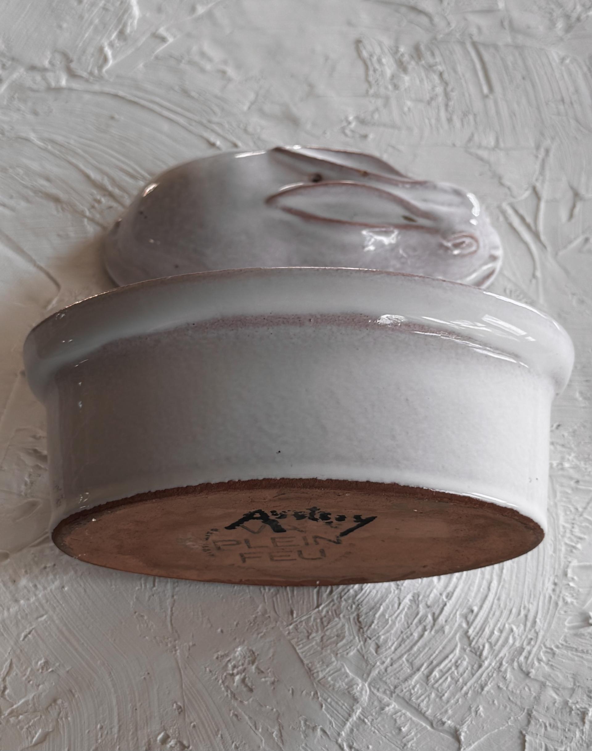 1980s bunny shaped handmade pottery container, france